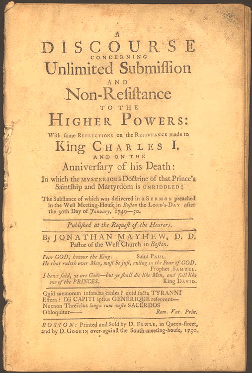 Rev. Jonathan Mayhew (1720–1766) was a minister in Boston known for his bold sermons and strong belief in both religious freedom and political liberty. Educated at Harvard College, he became pastor of Boston’s West Church in 1747, where he served for nearly two decades. Mayhew often challenged traditional religious views, emphasizing reason, personal conscience, and moral responsibility in matters of faith. He believed that religion should not rely on strict authority or fear, but instead be guided by thoughtful understanding and a commitment to justice. He came from a long line of Puritan ministers and was educated in Puritan-influenced New England, but he challenged the traditional beliefs of Puritanism, especially its emphasis on religious authority, intolerance, and rigid doctrine. Instead, Mayhew promoted rational Christianity, religious tolerance, and individual conscience—ideas that aligned more with the Enlightenment than with classic Puritan theology. His progressive ideas drew both support and criticism, helping to shape a more open and independent spirit in colonial America.